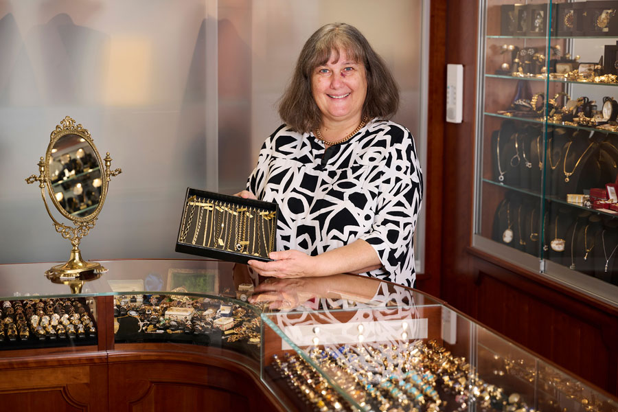 Mit viel Freude und Sachverstand an der Materie pflegt Reni Müller unser grosses Angebot an Schmuck mit Geschichte. Dabei berät sie Kundinnen und Kunden äusserst professionell, mit voller Hingabe und grosser Geduld. Dabei immer das eine Ziel vor Augen: zufriedene Kunden! Bei uns werden Sie in keiner Art und Weise gedrängt, ein Schmuckstück zu kaufen – im Gegenteil: nur ein passendes und ohne Vorbehalte erworbenes Schmuckstück erzeugt die so wertvolle und nachhaltige Freude!